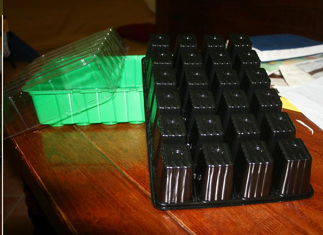In realtà queste serre sono fatte per contenere dischi di torba, i contenitori li avranno inseriti successivamente.