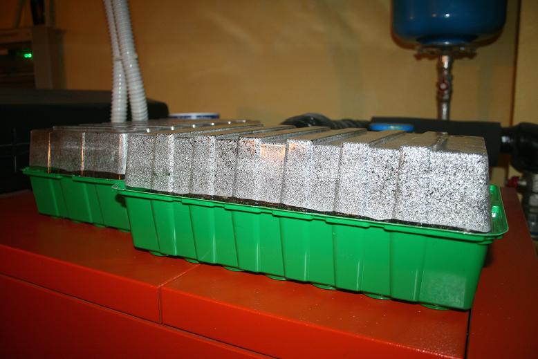 una volta germogliate conviene levare gli coperchi,per 2 motivi:l'umidita impedisce la penetrazione coretta della luce>affilatura con effeto di avizziamento ireparabile della piantina,proliferazione di funghi e batteri >malatie (da combattere con appositi prodotti) non capisco perche vendono i contenitori non forati,normalmente la machina termoformante prattica anche il foro,boh,li costera di meno....