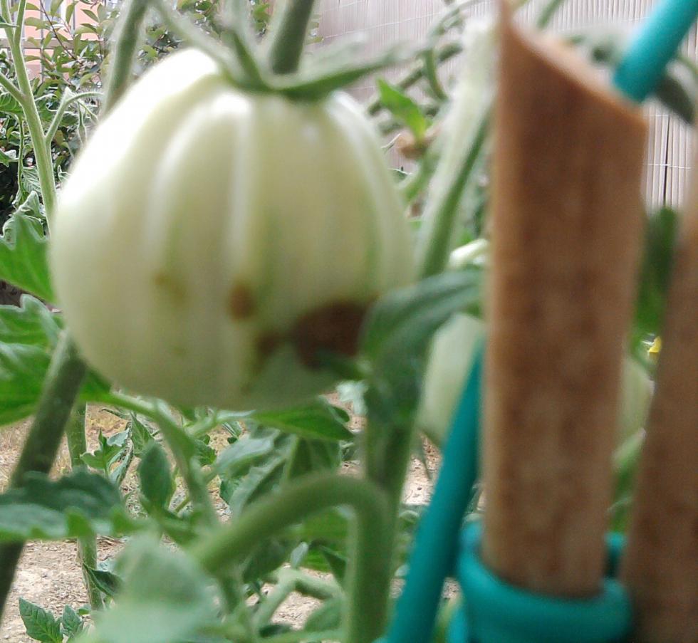 Perchè puoi far poco rimanendo nel biologico? Attacchi parassitari possono essere contrastati benissimo, basta capire cos'è. Potrebbe essere nottua o cimice (se il pomodoro si fradicia, come mi sembra sia sulla foto sfocata), però le cimici dovresti vederle sulle piante. Comunque se fosse nottua esiste il Bacillus Thuringiensis, per le cimici puoi dare il Piretro (cercando di non atomizzarlo perchè ha un forte potere abbattente su tutti gli insetti)