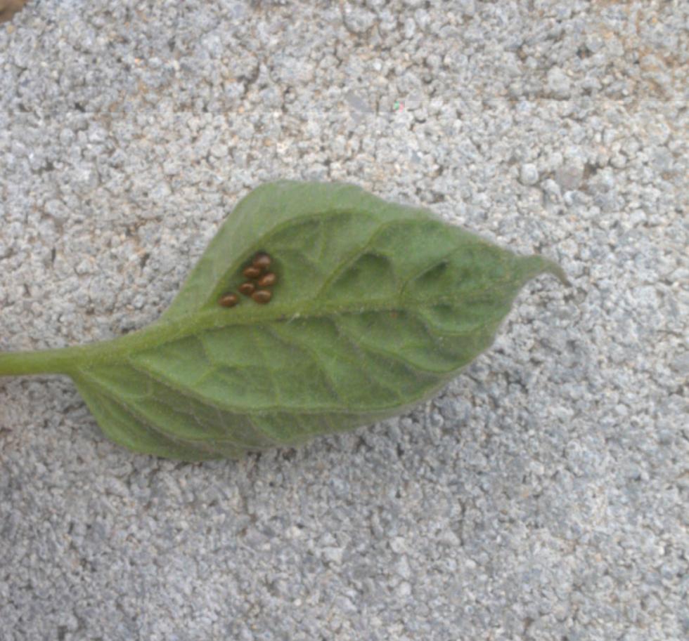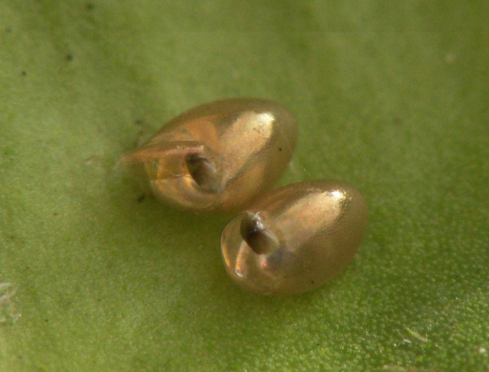Buonasera. Intanto vi ringrazio a tutti per i consigli e per ciò che scrivete, per un apprendista orticoltore come me è tutta esperienza che faccio a leggere le vostre risposte. Questa sera ho provveduto a fare un po' di manutenzione, chiamiamola così, alle piante dei pomodori, e tanto ho controllato un po' per vedere se per caso non ci fossero animaletti strani. Quello che ho visto è stato questo, e mi è veramente morto il cuore. Sapete dirmi che cosa potrebbe essere? Spero che l'immagine si veda bene, io meglio di così come messa a guoco e ingrandimento non posso fare. Praticamente cerco di descriverveli, sembrano 6 piccole sferette dalla forma ovoidale, del colore del bronzo, lisce. Sembrano più come delle uova che degli animaletti ... ho staccato la foglia e ora la conservo dentro uno di quei vecchi contenitori di plastica per pellicole della macchina fotografica, e quelle cose sono ancora li attaccate. Ho guardato bene altre foglie e non ho visto nulla di simile ... qualcuno saprebbe dirmi di cosa si tratta? Vi ringrazio.