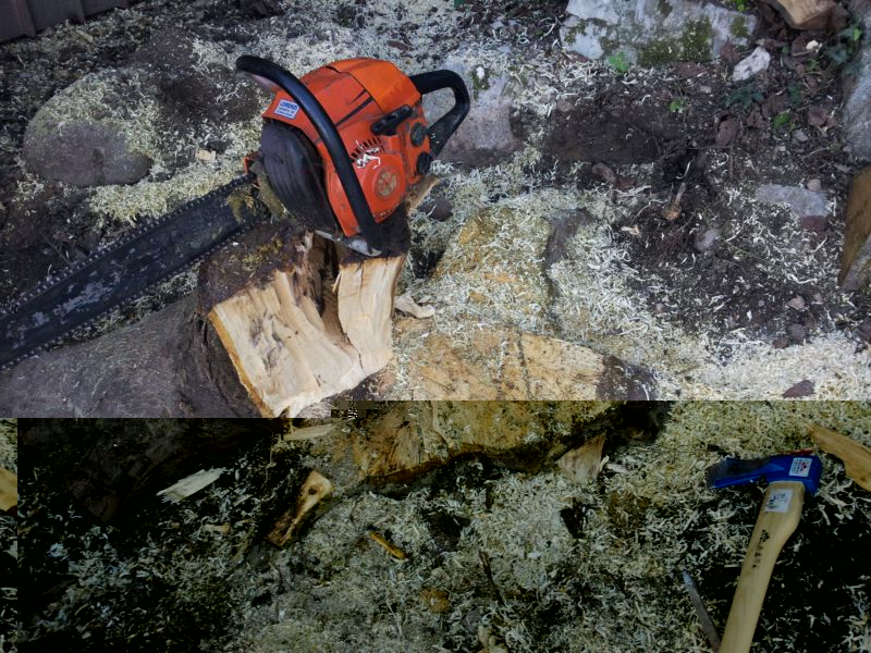 Finalmente dopo la raccolta del mais posso tagliare l'albero di noce che faceva un sacco d'ombra,inizialmente volevo portarmi spaccalegna e scavatore per le radici ma poi,penso per una qualche sorta di pazzia,mi sono intestardito e ho voluto fare tutto a mano...o quasi Scaldiamo le ossa per l'inverno in arrivo!!
