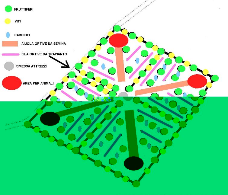 Ottima idea, allego un progetto di massima per una suddivisione del terreno in quattro parti compatibile con la coltivazione biodinamica. Saluti a tutti.