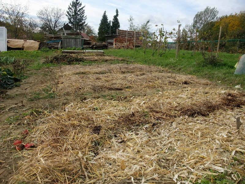 Quello che ho fatto è semplice: ho rinunciato ad arare il terreno, ho interrato dell'erba medica, ho pacciamato con paglia e pianta mais triturata.ammorbidire