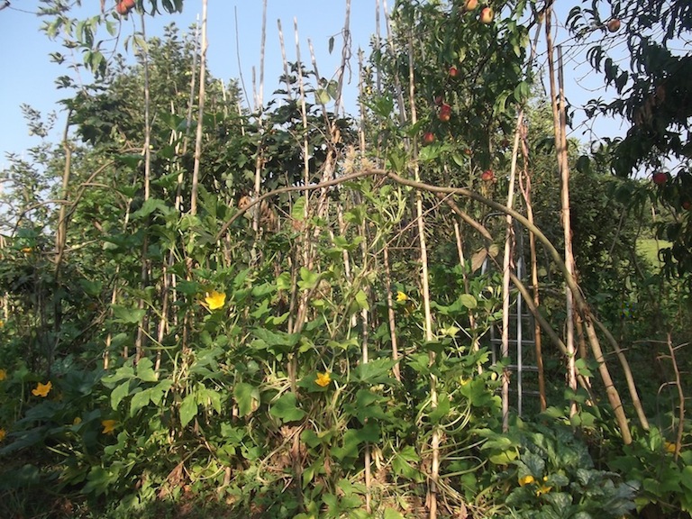 Fukuoka non ha mai “prescritto” l'uso della paglia per pacciamare gli ortaggi, la paglia la usava esclusivamente per i cereali (e solo i due terzi di quella complessivamente ottenuta perché altrimenti era troppa): la tecnica che propone per coltivare naturalmente verdure é basata sulla semina diretta, nel momento climatico perfetto alla specie prescelta, a file, su un prato con prevalenza di trifoglio e sulle successive falciature (1 o 2) per riportare le altre erbe all'altezza della “testa” di quelle seminate (ha comunque precisato che da lui peperoni, melanzane, pomodori si trapiantano e l'indivia é così debole che non vale la pena neanche mangiarla proprio in quanto debole -metafisica nutrizionista!). Una volta che gli ortaggi hanno “preso corpo” fanno da soli essendo nella media dei giganti rispetto alle altre erbe e quindi se trovano terreno soffice-fertile e le condizioni giuste per le loro caratteristiche crescono anche più velocemente surclassandole, in quanto geneticamente adattati a usare molta energia per diventare grossi rapidamente, figurati poi se le povere erbacce sventuratamente incontrano una potente lama d'acciaio ben affilata che le riconduce al livello del suolo permettendo agli ortaggi di prendere più spazio vitale (luce, aria, pioggia) in particolare quello laterale (ecco perché la semina a file, NB una fila può essere unidimensionale o una fascia, non abbiamo bisogno della seminatrice manuale perché la semina a spaglio può creare una fila larga anche un metro, dipende dal tipo di sviluppo di ogni vegetale). Per me le “erbacce” sono preziosissime (nei posti aridi fanno i chilometri per procacciarsi i semi per infestare i loro campi semidesertici) e mi fanno persino pena: che scontro impari contro una forma di vita mobile (un animale umano) e armata! Bisogna addirittura prendersene cura falciandole solo prima o dopo una pioggia, per assicurarsi che trovino velocemente l'energia per riprendersi dal colpo subito. Poveracci gli agricoltori che si avvelenano per sterminarle, ma tanto gli capita ogni qual volta che si muovono: i semi che usano sono ricoperti di preservativi tossici, i prodotti per fertilizzare o disinfettare sono velenosi, poi sempre dietro a gasolio, oli vari, solventi, gas di scarico, rumore, lavoro solitario... Senza poterlo immaginare hanno rovinato tutto, anche arricchendosi, rendendo le campagne, in alcuni momenti dell'anno, più inquinate dei centri cittadini. Io spero che lentamente, senza traumi, si estinguano e lascino a ogni persona la possibilità-libertà-dovere-piacere di preoccuparsi direttamente dei loro fabbisogni alimentari, (dopo respirare e bere, per ordine di importanza, c'é il mangiare). Mi fa ridere l'agricoltore così premuroso nel rifarsi i semi di radicchio, ma che non può venderli e così gli altri comprano le sementi industriali: esiste da sempre lo scambio, il baratto, il dono e anche l'illegalità (gli antifascisti la praticavano senza tregua per lottare contro la dittatura e ora non si fa altro che parlare di legalità...).
