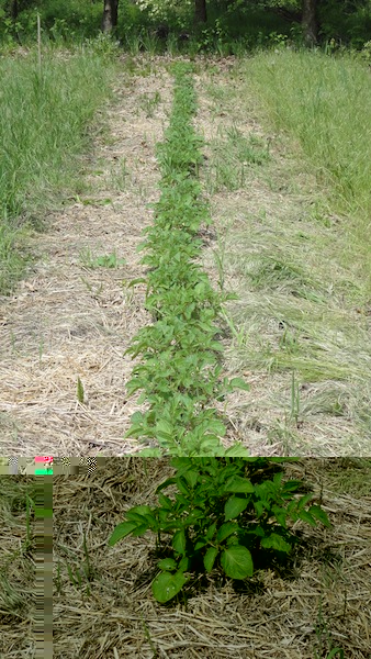 Poi notavo che le coltivazioni su una sola fila,forse per il fatto che le radici dell'erba vicina fanno concorrenza impoverendo il terreno e rendendolo piu duro,faticano molto di piu che non quelle su un bancale ben piu largo e quindi mi chiedevo se l'orto non viene meglio a quadrati pacciamati invece che a file.