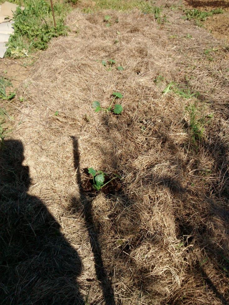 Purtroppo non sono riuscito a pacciamare a dovere... Spero in una rapida crescita della gramigna per tagliarla e lasciarla sul posto