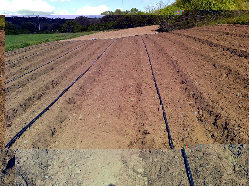 si il tubo è già forato ad intervalli di 20/30/40/50/60/80 e la durata è eterna trovi la terra bagnata in pieno giorno perchè hai fatto................la pacciamatura