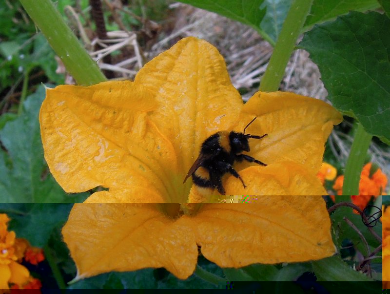 un'ape in un fiore di zucca
