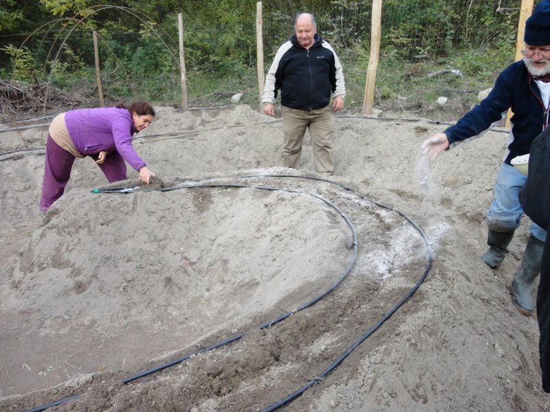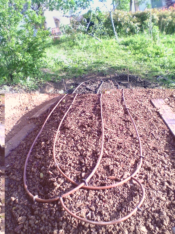 ma... mi sembra che ci sia molti tubi ma forse le misure non sono corrette: il bancale deve essere un trapezio con la larghezza della base 120 cm la parte alta pareggiata di 80 cm parte scoscesa abbastaza ripida i tubi a 10 cm dallo spigolo esterno... l'acqua deve penetrare e formae un cono scenza dilavare la parte scoscesa.. queste sono le indicazioni che poi ognono può addattare la suo pensiero e le due esigenze.. ciao nino Allegato: