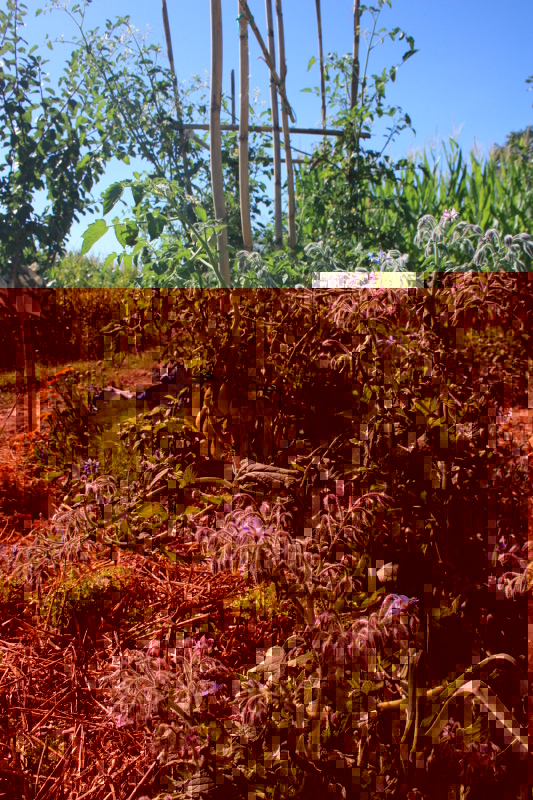 Avevo messo giusto un paio di semi di borragine... è cresciuta rigliosissima, occupandosi tutto un angolo del bancale. L'ho lasciata fare, anche perchè è bella colorata, i suoi fuori blu attirano molti insetti e ogni tanto la poto ottenendo un utile pacciame