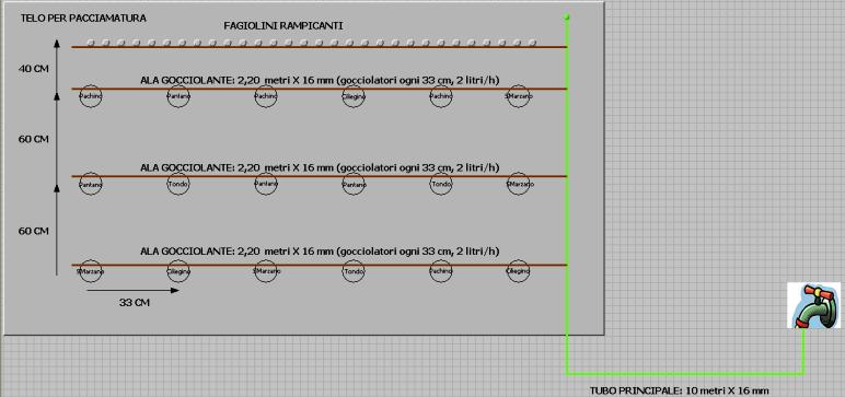 Bene! Mi è arrivato a casa il telo per la pacciamatura suggeritomi da Danilo e ho comprato il tubo gocciolante da 16 mm con gocciolatori posti a 35 cm. Ora non mi resta che installare il tutto (inizierò dalle piantine di pomodori, per i fagiolini aspetto che le temperature salgano ancora un pochino) anche perchè con la stagione qui ci siamo!!