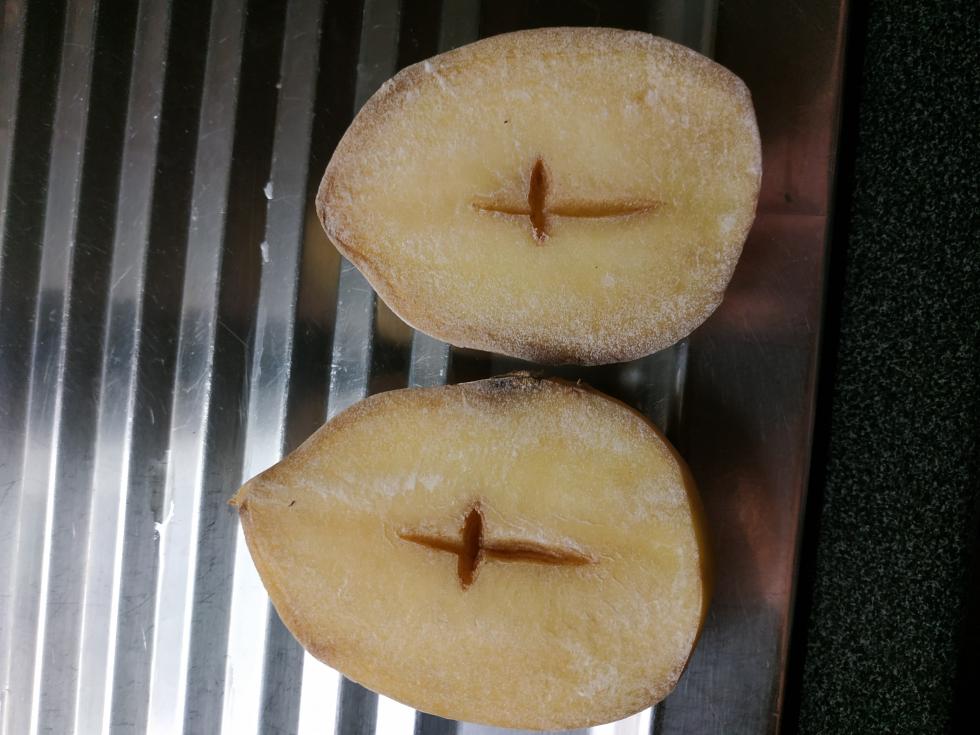 Secondo alcuni, tale fenomeno può essere dovuto ad uno stress subito dalle piante dopo l’inizio della formazione dei tuberi, mentre secondo altri fonti, è dovuto alla rapidità di ingrossamento dei tuberi. Difatti il cuore cavo è presente soprattutto nei tuberi più grossi. L’incidenza di tale sviluppo anomalo cresce con l’allungarsi del periodo intercorrente tra inizio della formazione dei tuberi e disseccamento delle piante e aumento delle piogge nello stesso periodo, mentre mostra di diminuire col crescere dell’investimento di piante per unità di superficie e con l’aumento della somma termica del periodo intercorrente tra inizio formazione tuberi e morte della pianta.Comunque fino a che compaiono croci poco male, fosse stata una svastica era peggio... Puoi consumarla tranquillamente!