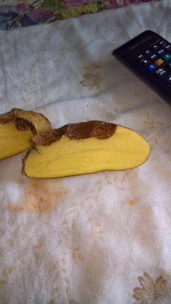 La consistenza della zona colpita e' dura...proverò a fare delle foto migliori sezionando la patata...grazie