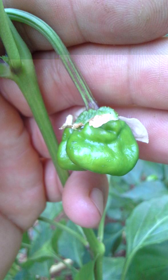 Vi aggiorno sulla possibile causa della deformazione, come avevo detto prima puo essere causato da tripidi e altri insetti. Stavo raccogliendo dei friggitelli quando in una pianta noto dei frutti deformi controllando sotto il picciolo eccola sorpresa (Terza foto tripide) (quarta foto altica)