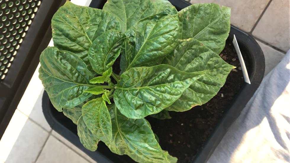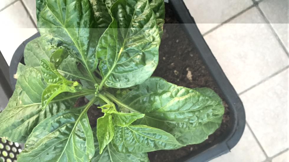 Buonasera, sto coltivando alcune piante di peperoncino in vaso sul balcone, tra cui habanero choccolate (che vedete in foto). Le piante sono state trasferite da una settimana in vaso da 11litri ed alcune di esse, in particolar modo la piante in foto presenta le foglie arricciate.