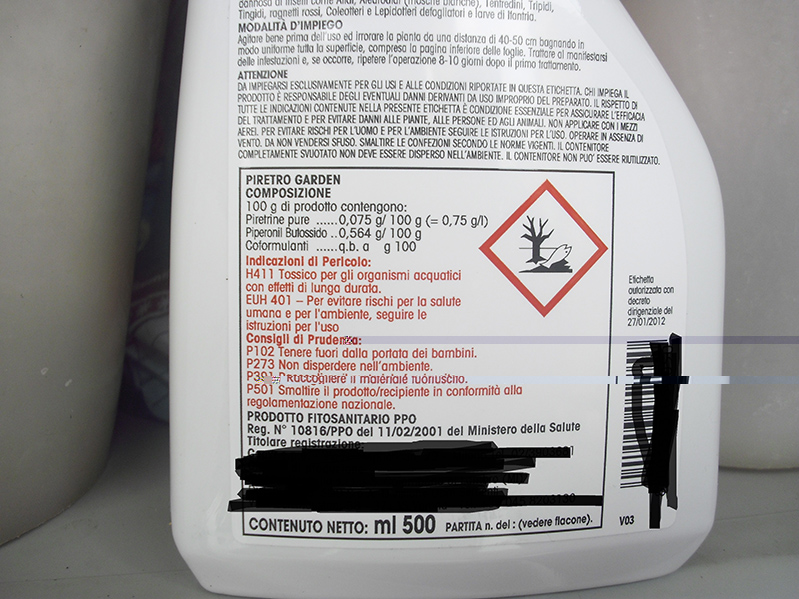 Buonasera a tutti. Mi sono accorto oggi che sulle mie piantine di peperoni giravano un sacco di formiche. Ho imparato a riconoscere che troppe formiche vuol dire presenza di afidi, ed infatti ho girato una foglia e ne ho viste un bel po'. Il problema è questo: ho in casa uno spruzzino a base di piretro naturale, indicato per piante ornamentali e da giardino, io lo uso perchè ho degli ibischi infestati da quelle bestiacce. Dato che non c'è scritto per orto, ma per piante ornamentali e da giardino, e quindi non è nemmeno riportato il tempo di carenza, secondo voi se lo do sui peperoni poi rischio di inquinare anche loro e di poi mangiarmi delle schifezze oppure posso darlo tranquillamente? Se non posso darlo, che prodotto devo comprare? Ho sentito che contro gli adifi funziona una miscela di acqua e sapone di marsiglia, è vero? Scusate per le tante domande, ringrazio chi sarà così gentile da rispondermi.