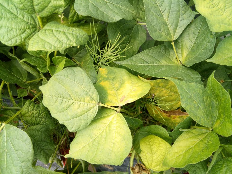 Mi sento di escludere peronospora. L'aspetto e la distribuzione del giallume nemmeno mi induce a pensare a una carenza, al limite prenderei in considerazione una virosi. Se notassi segni di malformazioni o di mosaico, puntini gialli più luminosi, alterazioni a carico dei baccelli, quest'ultima ipotesi avrebbe ragione di sussistere (esistono virus che inducono sintomatologie più 'leggere' come BYMV). Ti metto un link con una sorta di chiave per il riconoscimento delle carenze nel fagiolo (ci sono anche foto). https://cropwatch.unl.edu/soils/soybean-nutrients