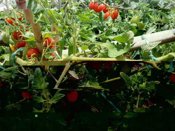 Confermo che i pomodori sono sotto una serra fin da Aprile. Comunque il telo è alzato lateralmente per più di 1 mt. Ci sono circa 30 piante di vari tipi e solo 2 vicine sono così ingiallite... Mia madre sostiene che se togliamo il telo si scottano tutti i pomodori già presenti. Inoltre ha notato che quelli grandi, anche se rossi, hanno uno strato giallo interno alla buccia, come se fossero maturati velocemente solo esteriormente. La terra è un po' compatta, ieri l'ha mossa un po un un forcone(non è facile zappettare sotto le canne) ed ha interrato un po' di concime.