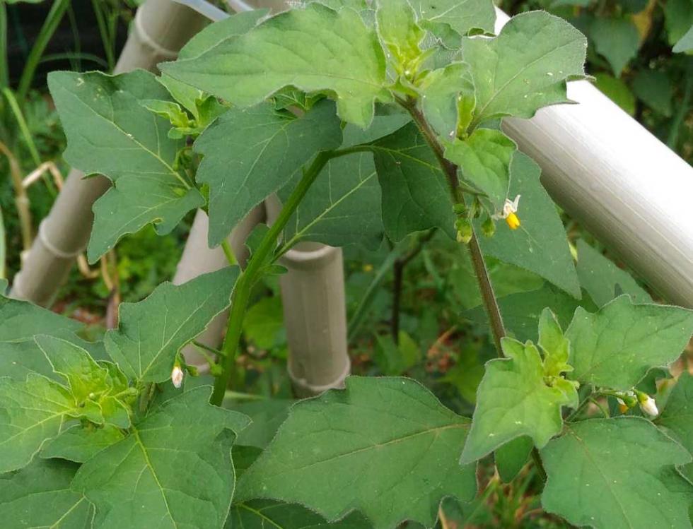 Ciao, si tratta di solanum nigrum questa pianta si puo usare come pianta trappola per nematodi.