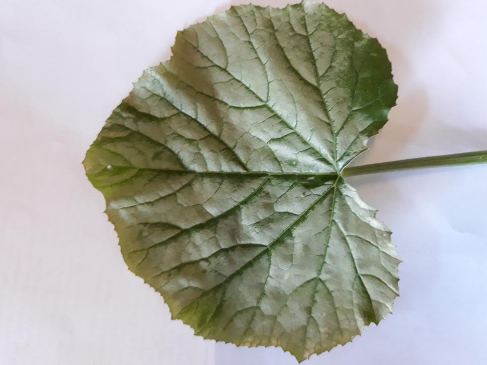 Ho dello zolfo non bagnabile, ma mi si è rotto il solforatore e non so come darlo senza rischiare di danneggiare i piantini. Ho asportato una foglia e fatto una foto migliore su sfondo bianco. Le foglie cominciano a schiarirsi dai bordi e poi si estende a tutta la foglia.