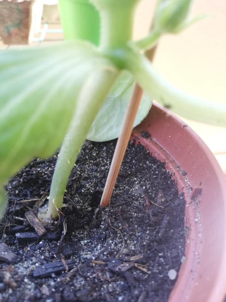 qua c'è molto vento e io ho le zucchine ancora nel cilindro di plastica. Le protegge molto dalle folate di vento.