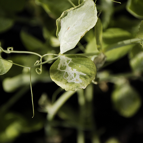 Su alcune foglie delle mie piantine (fagiolini, fagioli, cicoria, valeriana,..) ci sono delle linee bianche spesse qualche mm. Osservando da vicino, scopro che c'è una larva microscopica, di colore giallo ocra, che vive nella foglia la mangia.