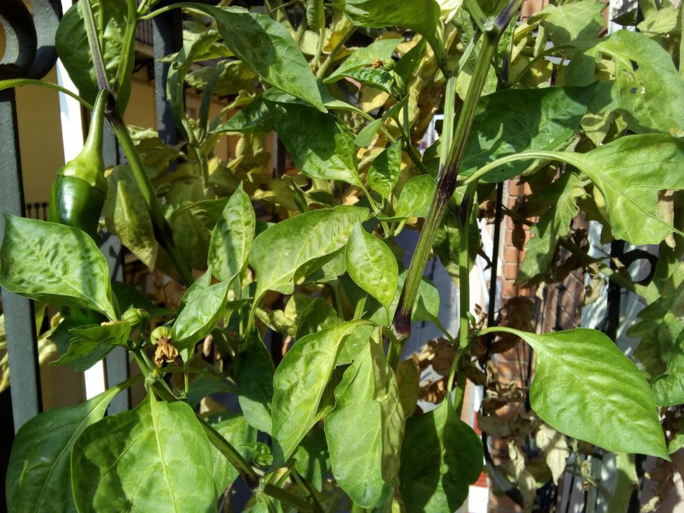 Nel frattempo i nodi sui rami dei peperoni hanno iniziato a diventare violacei, non so se è normale nel processo di lignificazione del fusto o no, lo aggiungo per completezza.
