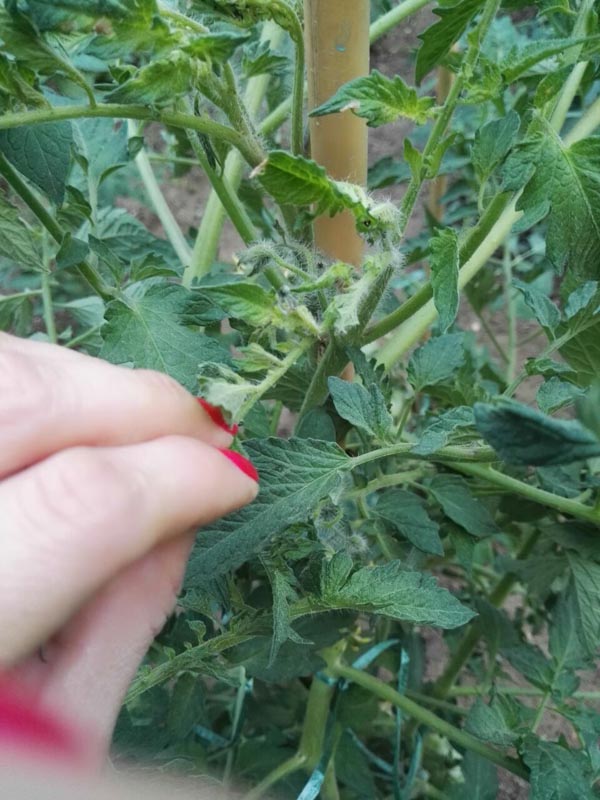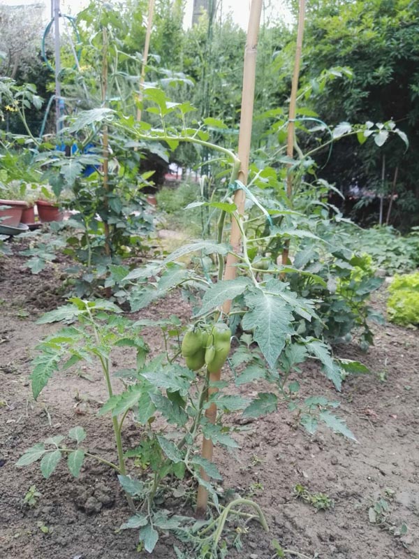 Ho solo paura per la pianta che scivola verso il basso nonostante la legatura che si possa rompere con tutti quei pomodori :(