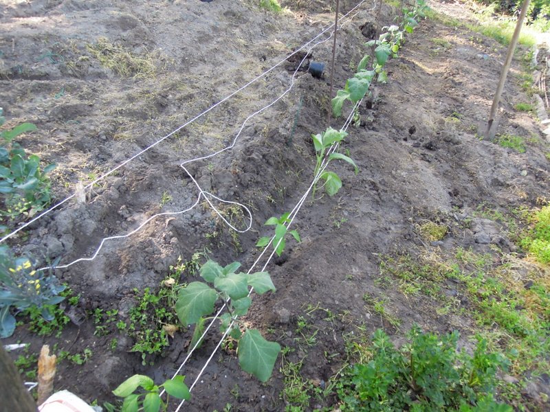 ho cominciato con le melanzane innestate e peperoni alternati ad una distanza di 50-60 cm pensando che le melanzane vanno in alto e i peperoni stanno bassi (di solito) e siccome le melanzane faranno molti rami pensavo di stenderli lungo il filo come certi alberi da frutto. ho intecciato i fili con aste di tondini di ferro . forse occorre legarli saldamente e per fermare le piante ?? poi metterò un'altra fila di pomodori.. ma mi sembra tutto un po ballerino forsae mi conviene mettere a metà altezza un filo di ferro ?? saluti Nino