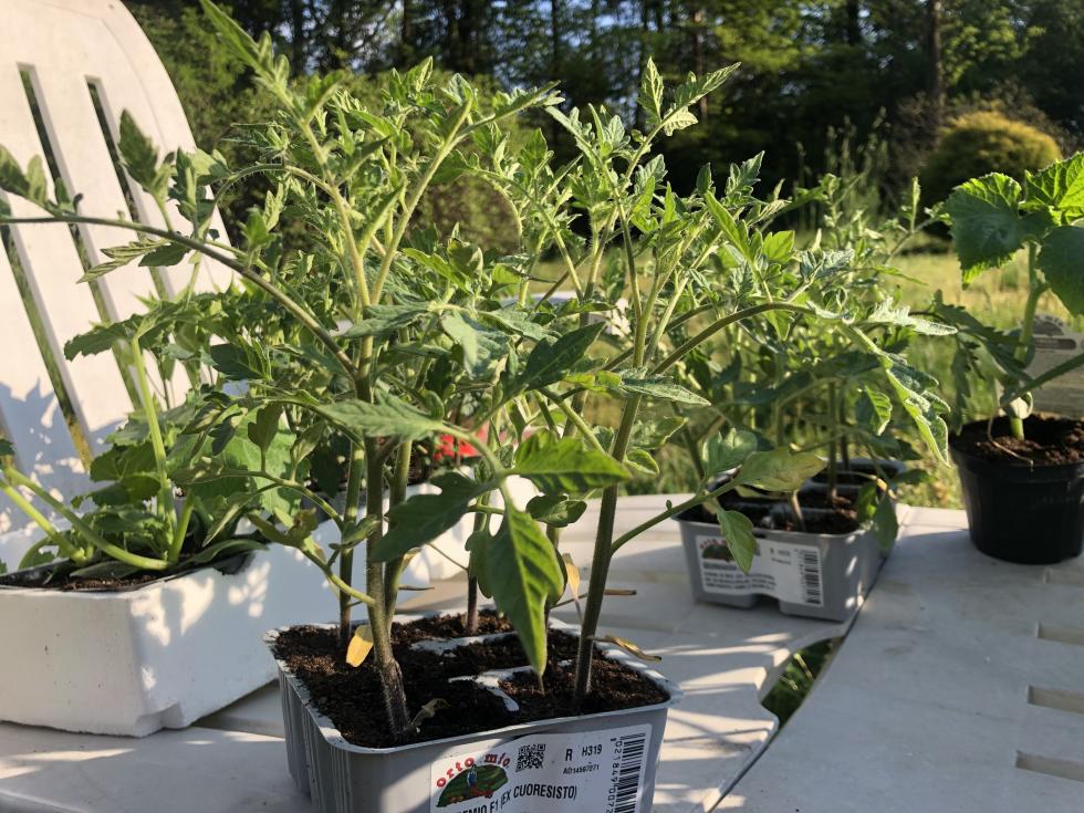 Buongiorno a tutti. Come anticipato nell’altro topic aperto, ho acquistato, con troppa fretta, delle piante di pomodoro. Qui in Lombardia però non mi sembra faccia ancora così caldo ( le minime sono sui 10/12 gradi) e dunque sto attendendo a trapiantarli. Di notte li tengo al chiuso, di giorno al sole. Il problema è che attualmente una pianta di pomodoro inizia a dare segni di sofferenza. I vasetti in cui sono posizionati sono davvero piccolissimi, e penso che sicuramente questo sia fonte di stress. Ho notato una pianta con una foglia giallastra, oltre ai rami un po’ flosci. Non comprendo se il problema sia un eccesso di acqua (cosa possibile, i vasetti sono piccolissimi e stipati, fatico a ad innaffiare tutte con una giusta quantità di acqua o altro. Temo le piantine inizi l a sofferire gli spazi ridotti. Non penso sia peronospora ma devo dire di non averla mai vista e dunque non escluderei nemmeno quell’eco (soprattutto considerando la vicinanza che hanno).