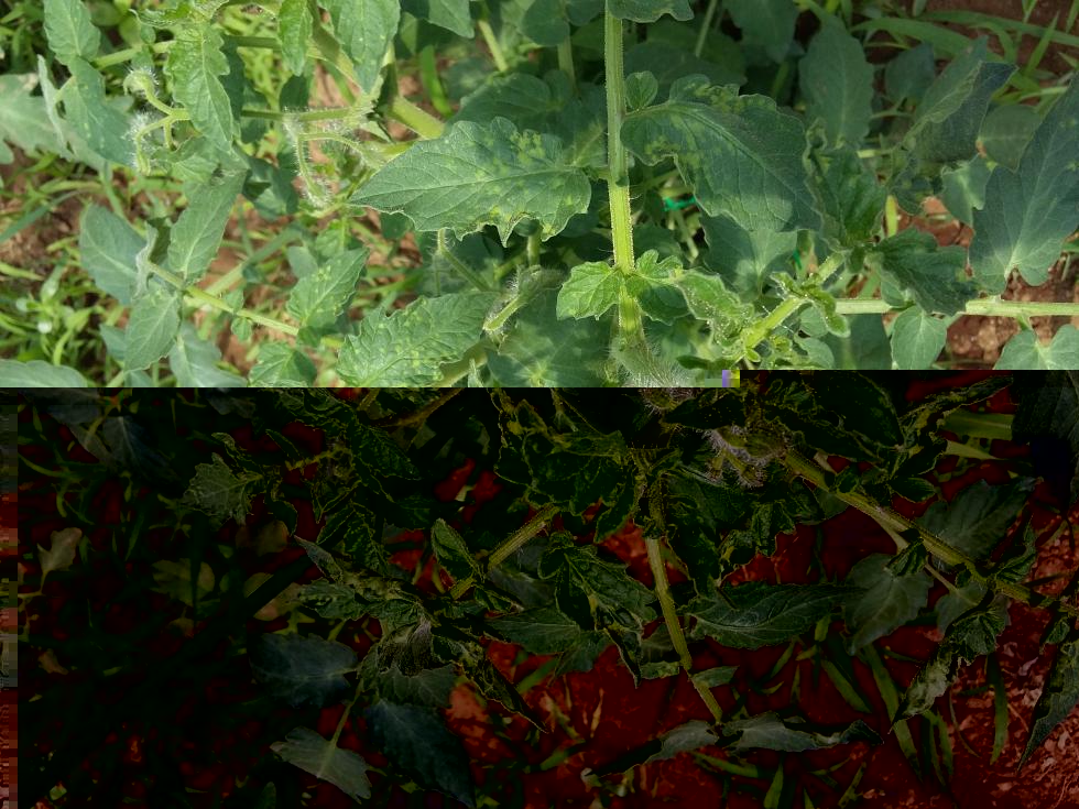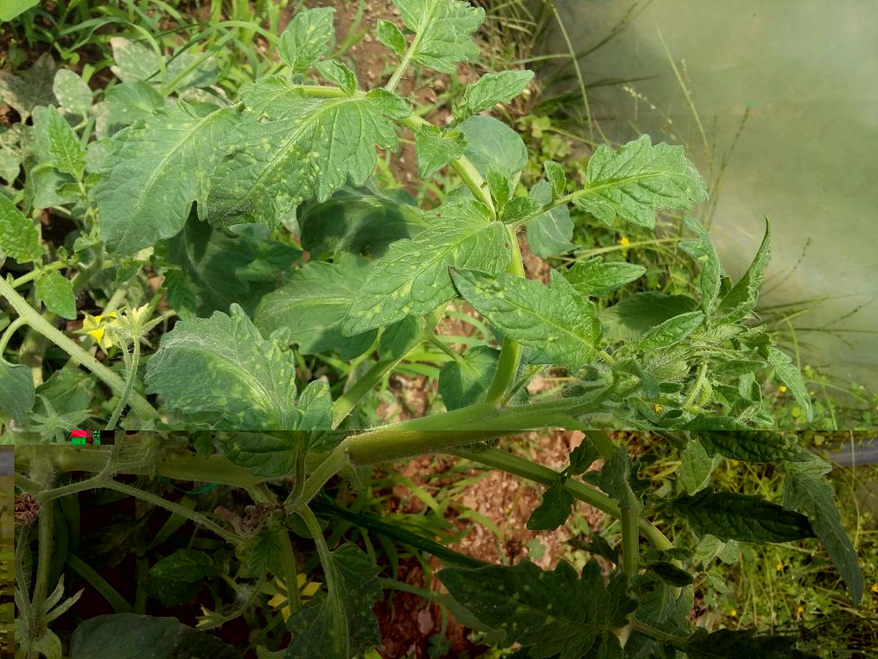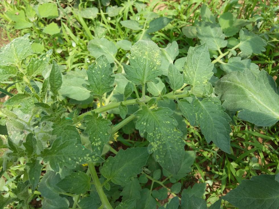 Buonasera, chiedo per favore la vs. opinione sulle macchie (solo sulla parte superiore delle foglie) che sono comparse su alcune piante di pomodoro (allego foto). Ho paura che si tratti di una virosi ma spero di no. Le foglie non sembrano "accartocciarsi", forse sembrano un po' strani solo i germogli di una pianta ( in una delle foto).