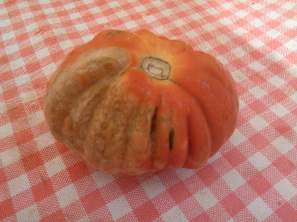 Ho questo pomodoro con una macchia sulla buccia.