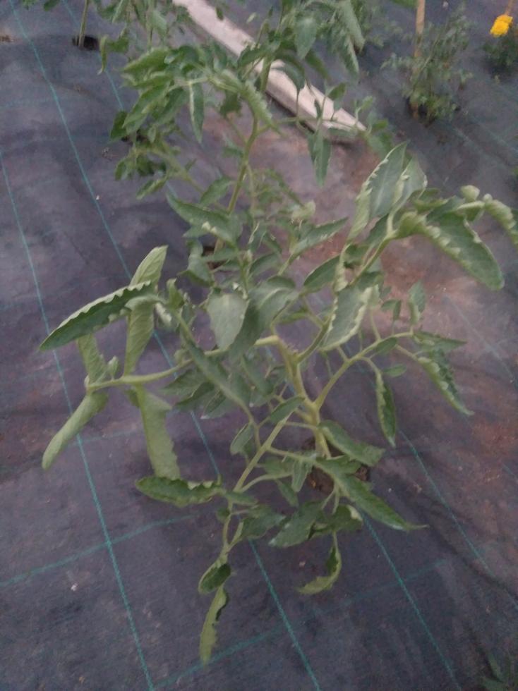 Pomodoro pianta verde Scuro e foglie arricciate