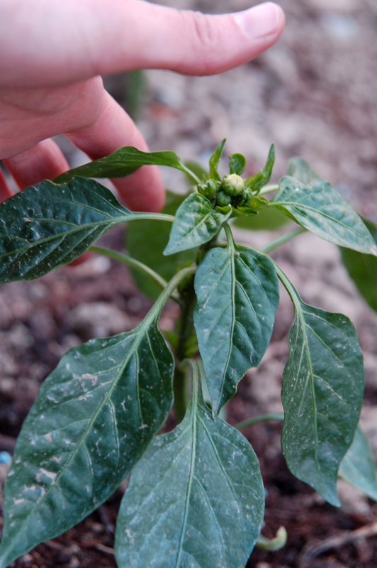 Allora, come ormai saprete qui siamo alle primissime armi – per quest’anno di partecipare al concorso non se ne parla ! Avrei però bisogno di capire se sta andando tutto bene, se abbiamo fatto le cose a modo o se invece abbiamo fatto qualche pasticcio… Perché ho pomodori, zucchine e peperoni trapiantati tre settimane fa, ancora piccoli ma con già i fiori sopra (i pomodori anche qualche fruttino!!!), è normale? A me le piantine sembrano così poco cresciute… In più da venti giorni qui la temperatura non sale oltre i 22 gradi... Non è che devo togliere i fiori per lasciare sviluppare le piante ancora un po’? Ecco le foto, con la mia spanna per darvi le proporzioni. Che ne dite, come procede?