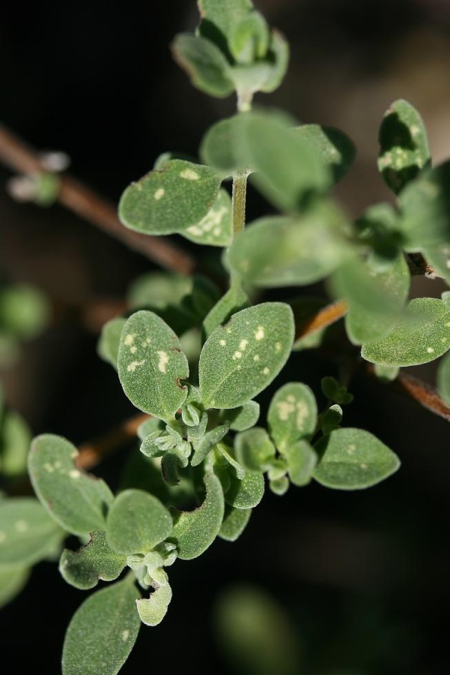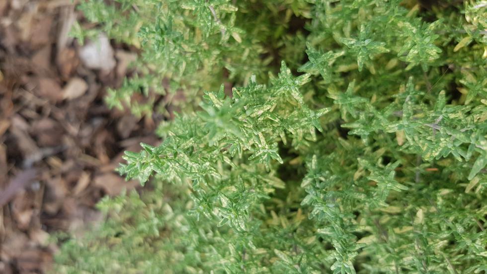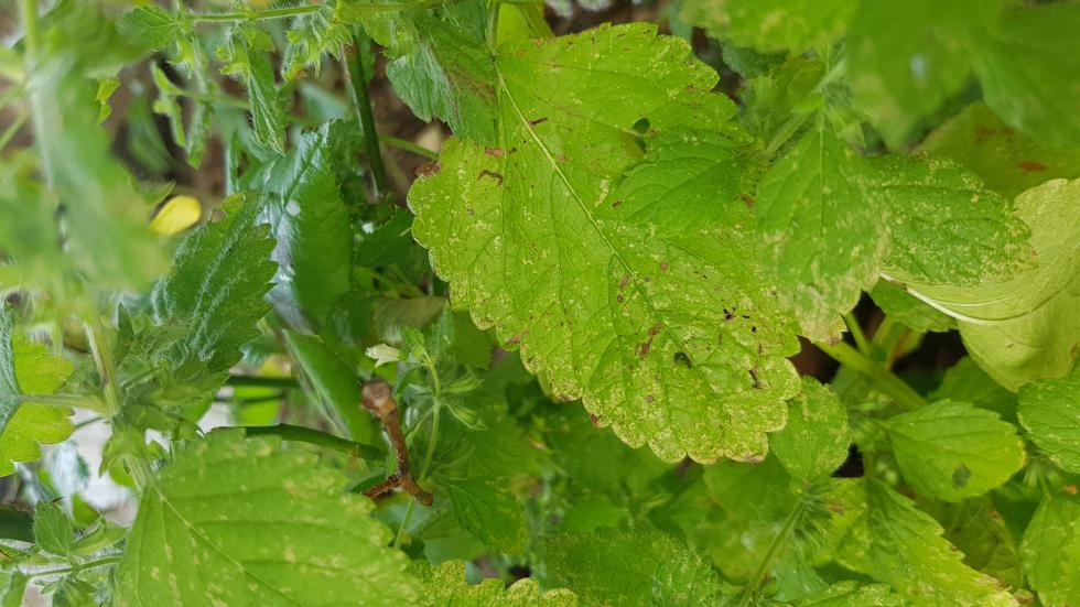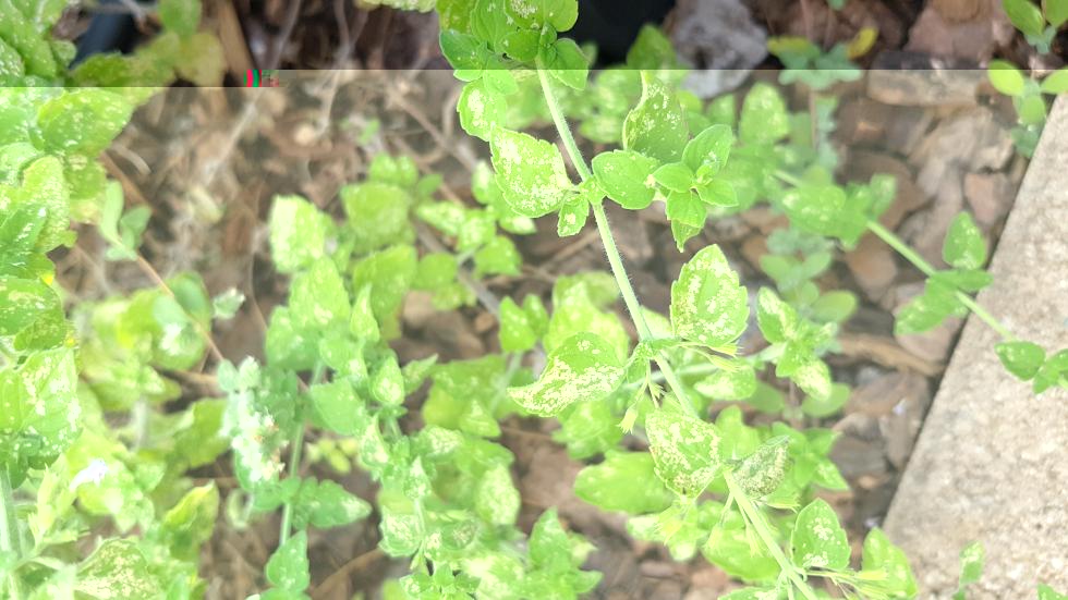Avete ragione, ho provato a scuotere qualche pianta, e sull'origano ho visto qualcosa che saltellava, su altre molto meno, vi metto qualche foto in alta risoluzione delle aromatiche, tenete conto che sul terreno ho un alto strato di corteccia pacciamante, non vorrei che abbia portato a funghi o malattie.