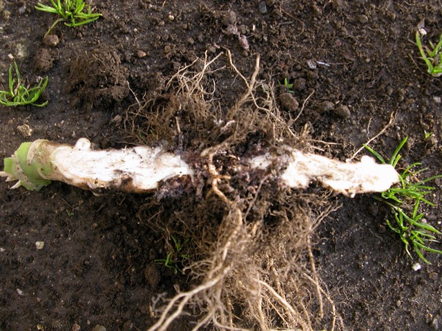 le larve di maggiolino mangiano le radici, quelle luride mi hanno fatto seccare molte piante (per piante intendo alberi di forestazione specialmente ciliegio), il ferretto non è detto che sia proprio sotto la radice essendo molto mobile.