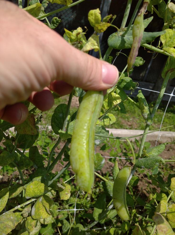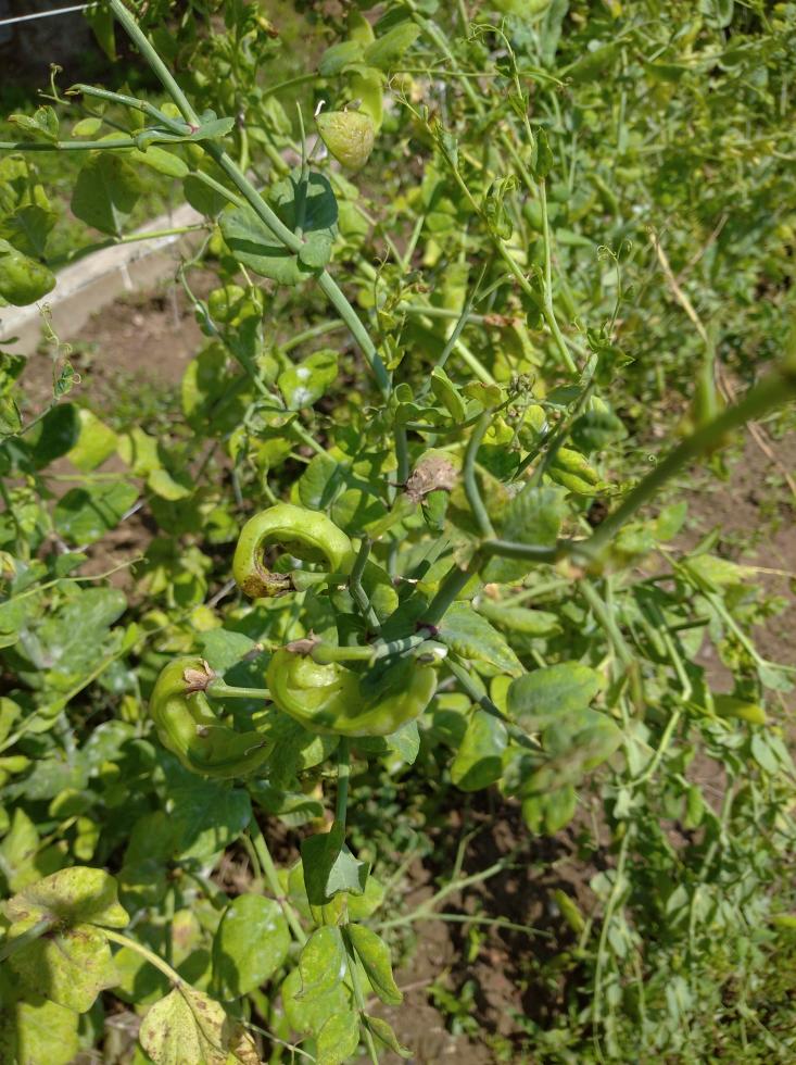 Sono taccole o piselli e a giugno è normale che le piante muoiano è troppo caldo .