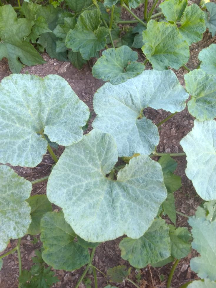 In particolare le zucche violine presentano delle foglie con macchie scure, secondo me potrebbero essere dei problemi derivanti dalle giornate più calde.