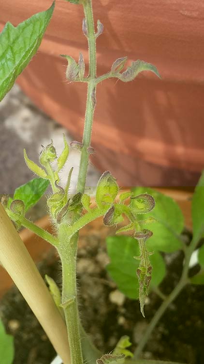 ho un problema sulle foglie apicali delle piante dei pomodori in quanto si arricciano come potete vedere nelle foto qui sotto...
