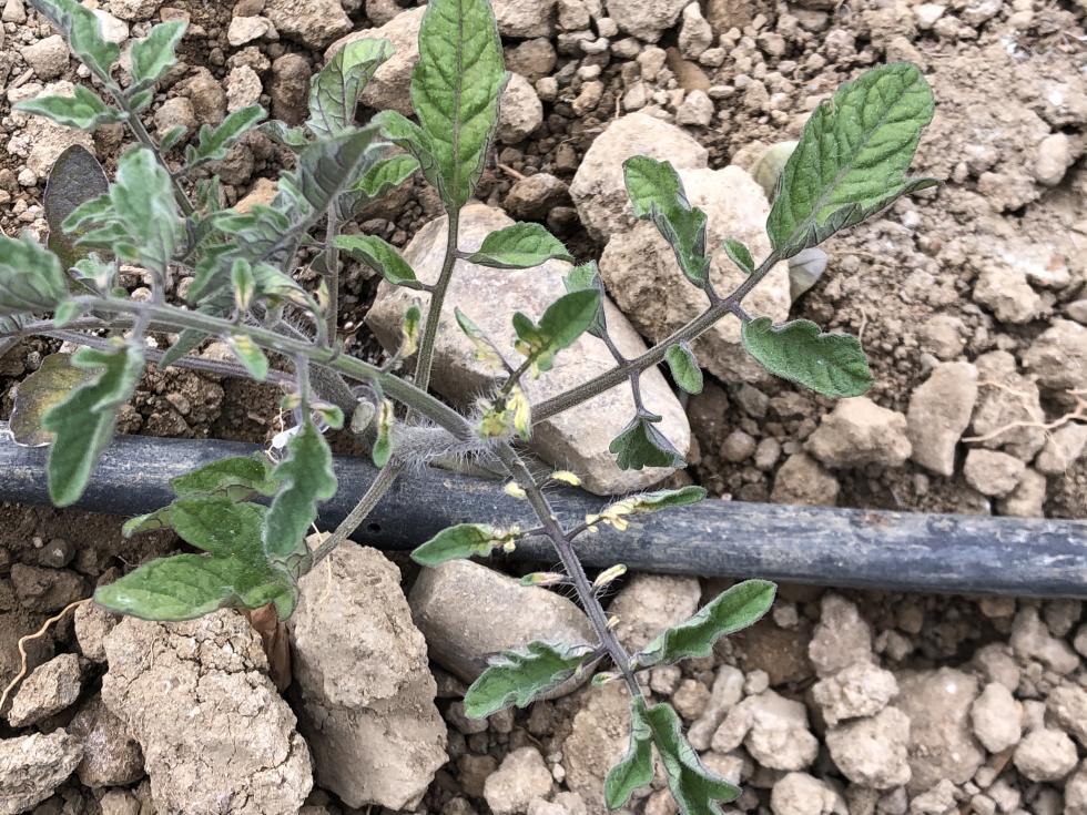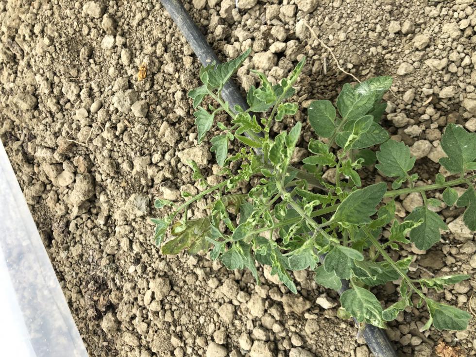 Salve ho questo problema su pomodoro da serra , è stato trapiantato il 9 marzo , cosa potrebbe essere ?