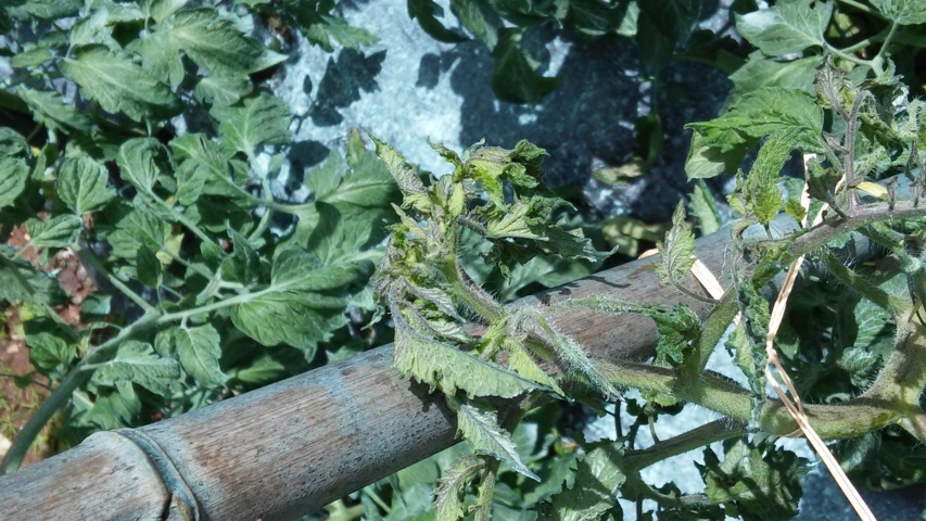 Ciao, come concimazione un 7,7,7 misto organico e stallatico.... pomodori, cirio cirano...il tratto dell'apice vegetativo si affloscia. Gli altri tipi di pomodori sono migliori. Abbiamo un periodo di troppa pioggia.
