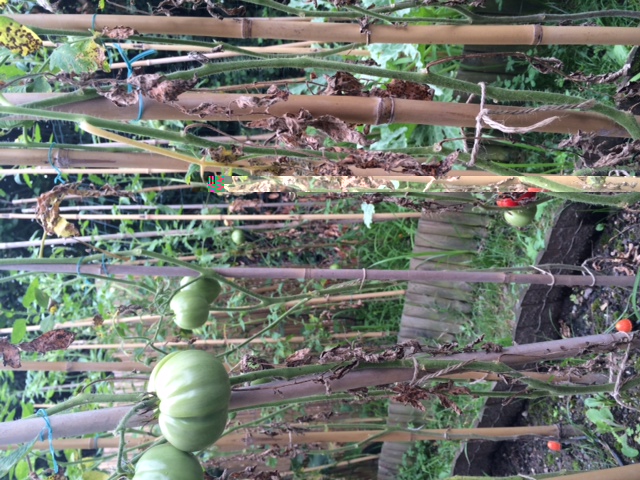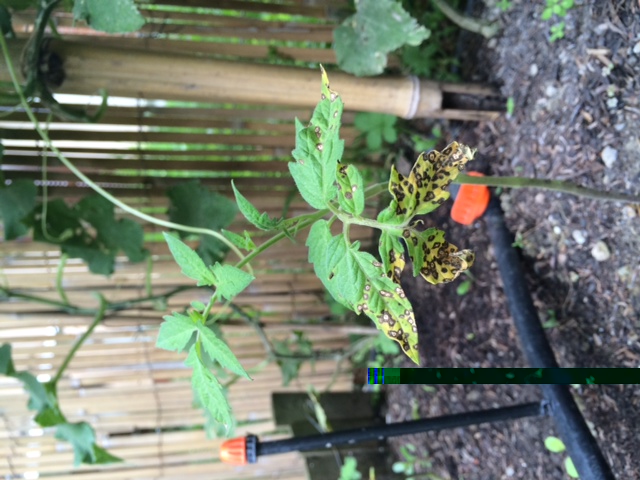 Ho un orto piccolo, in realtà dove ci sono i pomodori ho l'irrigazione a fontanella che bagna solo la base delle piante e sono comunque molto malate. La piantina piccola che vedete con l'irrigazione a vaporizzazione è un esperimento in un aiuola dove solitamente tengo solo insalata.
