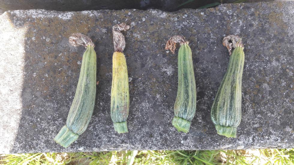 Le mie due piante di zucchine che ho messo sotto serra hanno un problema. Le zucchine, quando arrivano a essere di circa 10cm diventano come in foto. Ne ho già tolte 6 o 7 per pianta. Può essere un problema di impollinazione?