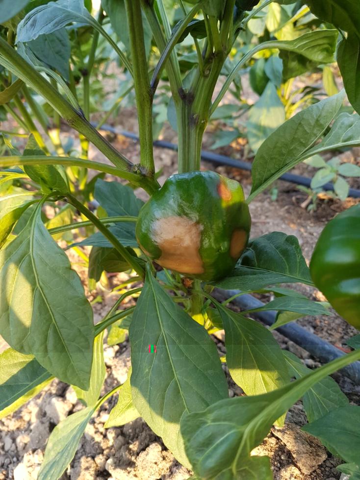 Le scottature avvengono anche nella parte inferiore per riverbero, sommato alle temperature alte, soprattutto dopo una piovuta. I peperoni più suscettibili sono proprio quelli vicini al terreno. Unico rimedio ombreggiare leggermente le piante.