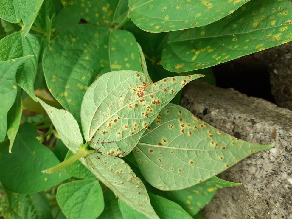 Mi ritrovo con le foglie dei fagiolini picchettate di pustole, in rilievo, sulla pagina inferiore. Sembrano quasi delle galle ma, anche usando una forte lente, non ho visto traccia di insetti.
