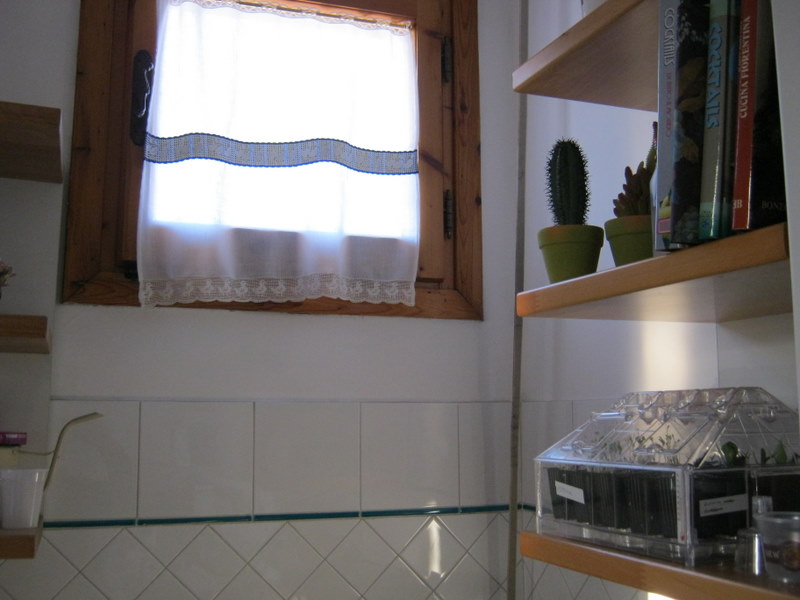 Poi abbiamo messo il semenzaio nei pressi di una finestra esposta a sud, però la luce diretta l'hanno soltanto 2/3 ore al giorno, perchè il fascio di luce si sposta su altre parti della stanza.