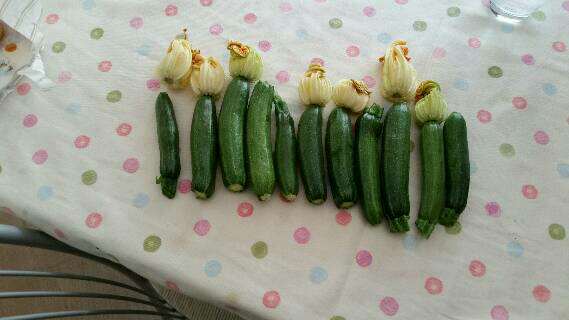 Mi spiace n potervi dire che specie sono...però le prime prime le ho raccolte piccolissime perché mi han detto che so dovevano togliere subito...per far crescere meglio la pianta...ed erano buonissime...sia cotte che crude