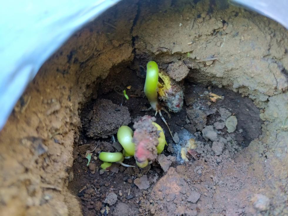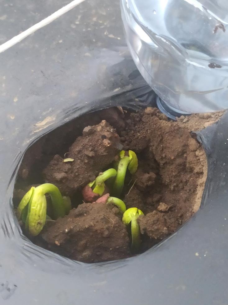il caldo si fa sentire e la terra ha bisogno di essere irrigata, con l'innaffiatore a mano ho bagnato poco per aiutare i nuovi germogli a sollevare il cappello di terra di circa 3 cm