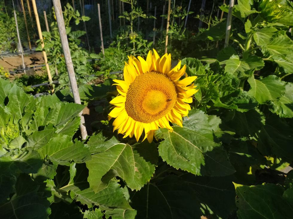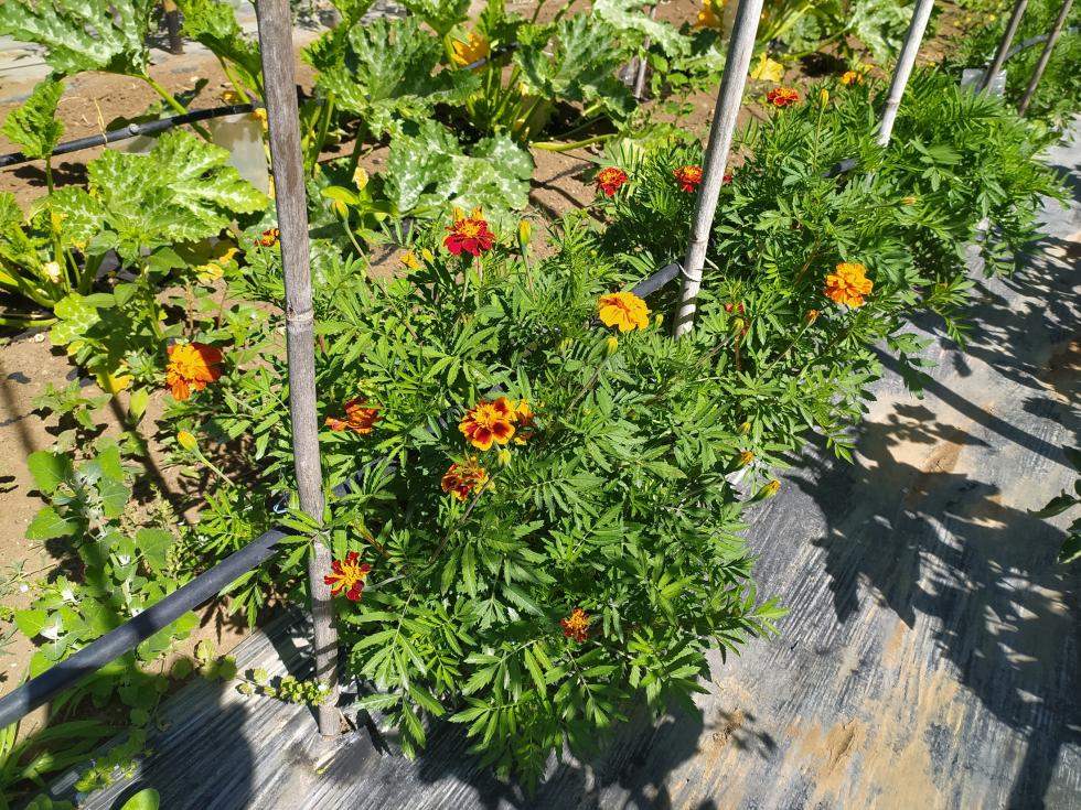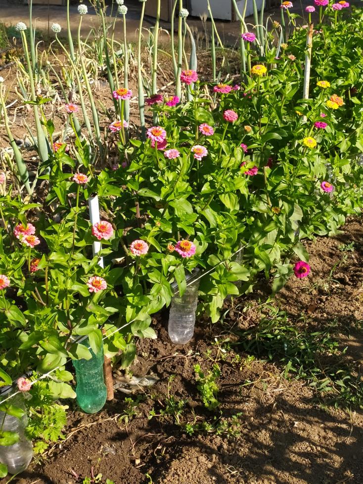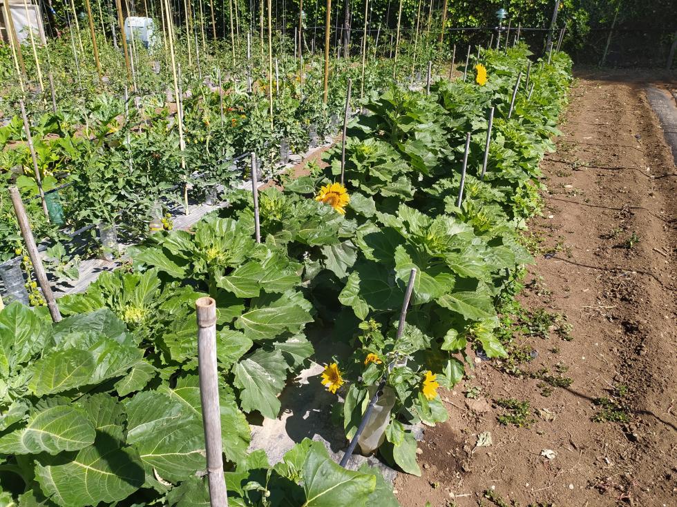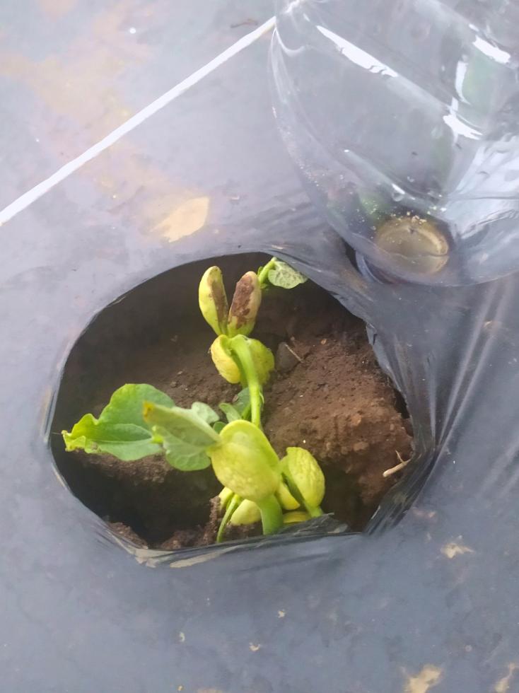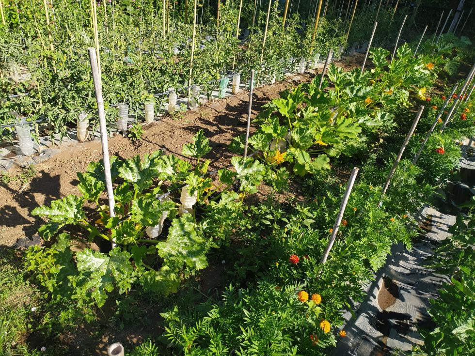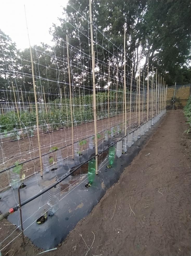 tutto l'impalco con canne bambù, la rete e i tubi di irrigazione e le imbut è completato. Adesso tocca alle piantine crescere per dare i propri frutti