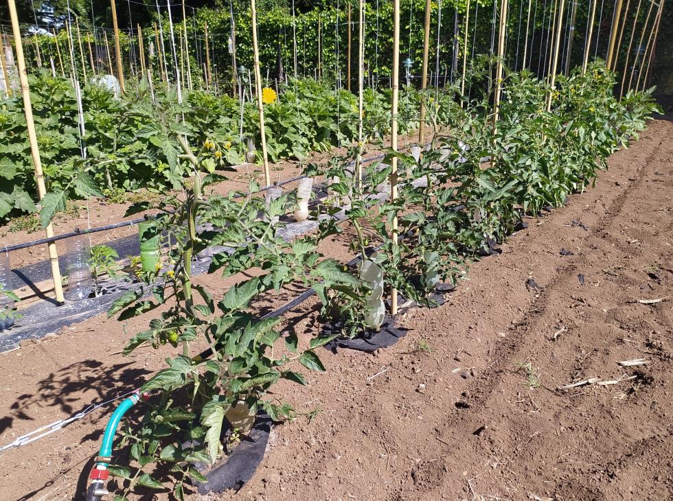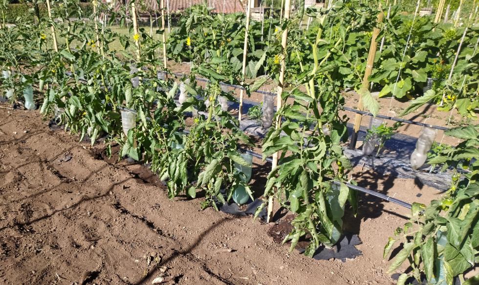Siamo nel mese in cui entra l'estate, i pomodori amano il caldo ma attenzione alle scottature, se le temperature superano i 38° occorre organizzare prevenire con delle ombreggiature. Tutte le precauzioni utilizzate a mese aprile e maggio con minitunnel per non danneggiare i pomodori causa temperature impazzite specie di notte, mi stanno regalando ottime crescite. Quest'anno ho rivoluzionato la crescita delle piante mediante filo e devo dire che è molto facile semplice e rapida la manutenzione/potatura e più sicuro il fissaggio dei fustini. POMODORO CUORE DI BUE 4 GIUGNO Allegato: